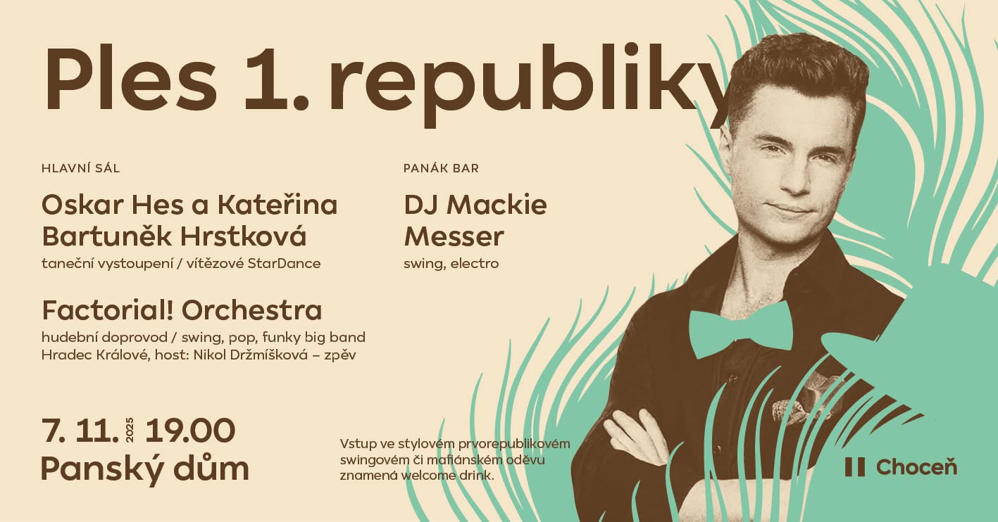 Kuba Kubín & Factorial Orchestra, Choceň 19:00 7.11.2025 Choceň Panský dům Factorial orchestra a ples? To je jak voda a život. Tak se přijďte pobavit ma tenhle ples 1. republiky. My tam budeme taky! Víc info tady https://facebook.com/events/s/ples-1-republiky-pansky-dum-ch/1725374484789117/?